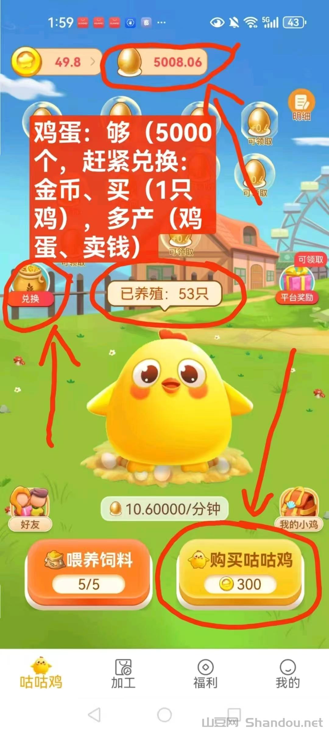 首码小鸡牧场刚刚上线,纯零撸的,注册送3000金币,全部买10只鸡